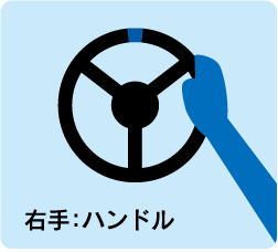 右手で操作します。真ん中の青いラインが進行方向です。ターンの時には左にハンドルをきり、直線に入ったら元の位置に戻しましょう。