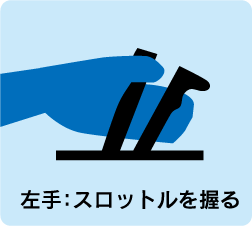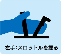 左手で握ります。握り続けると、徐々にスピードが上がっていきます。ターンのタイミングで少しスピードを落とすと曲がりやすくなります。