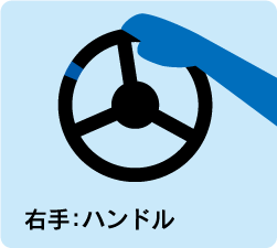 右手で操作します。真ん中の青いラインが進行方向です。ターンの時には左にハンドルをきり、直線に入ったら元の位置に戻しましょう。