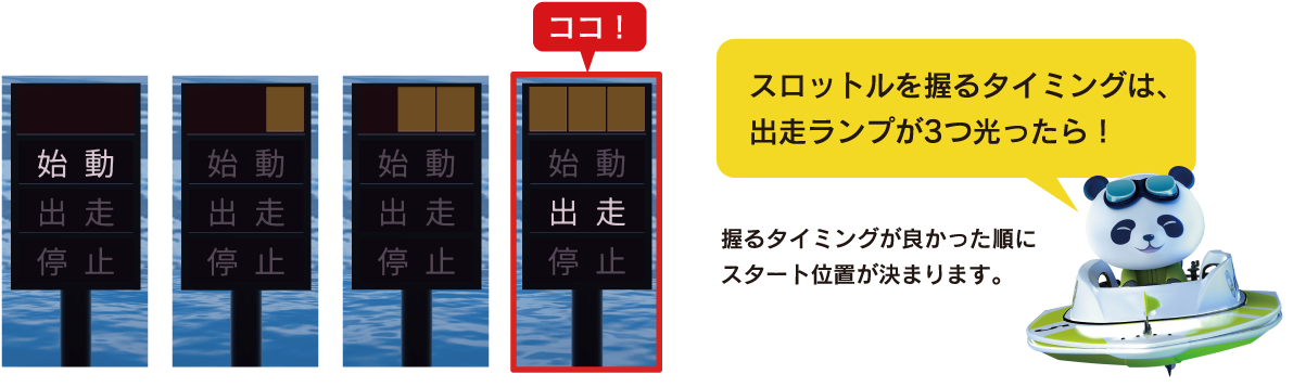 ターンする時は大きく体を左に傾けましょう。実際にレーサーがとる「モンキーターン」という姿勢が有効です!また、直線では姿勢を低くするとスピードアップします。